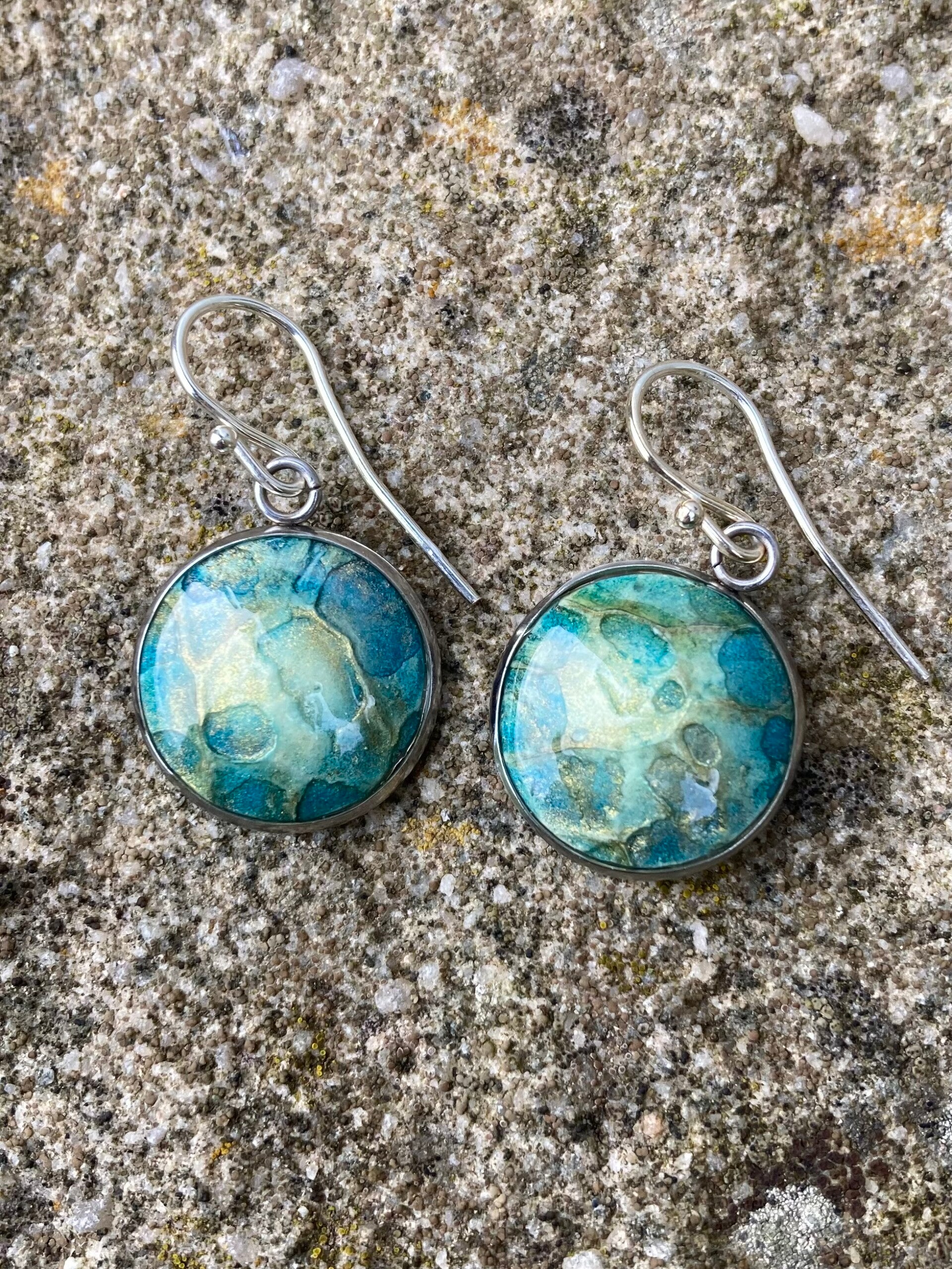 16 mm non tarnishing stainless steel bezel setting, resin, with sterling silver earwires